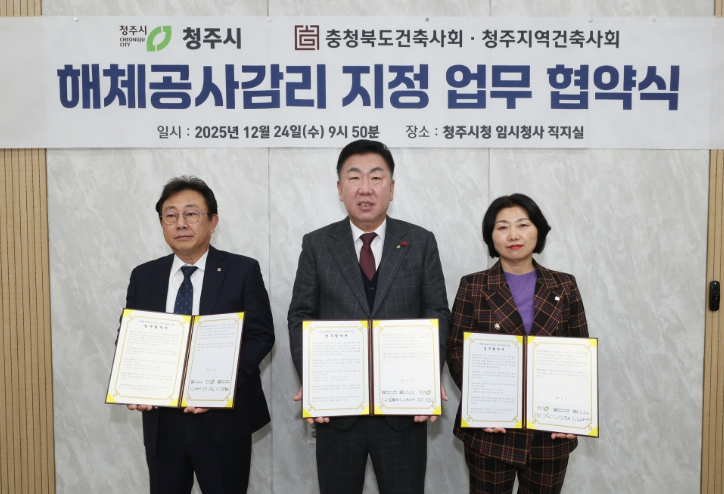 [메이저뉴스] 청주시는 24일 대한건축사협회 충청북도건축사회, 청주지역건축사회와 ‘건축물 해체공사 감리자 지정 업무대행에 관한 업무협약(MOU)’을 체결한다.