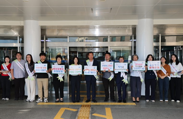 [메이저뉴스]부산 중구는 26일 청사 입구에서 깨끗한 공직문화 조성을 위한‘청렴 실천 캠페인’을 실시했다.