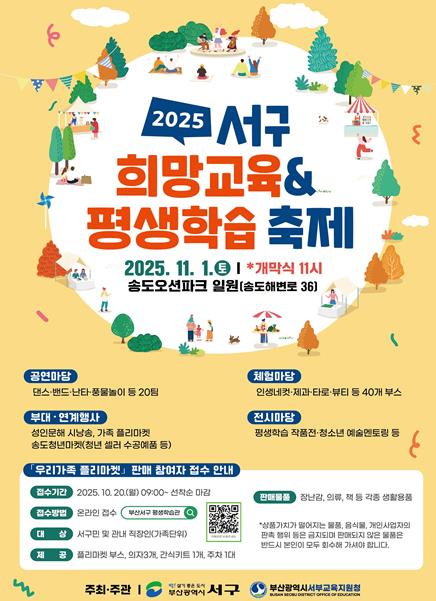 [메이저뉴스]부산 서구는 오는 11월 1일 송도오션파크에서 서부교육지원청과 공동으로 '2025년 서구 희망교육 & 평생학습 축제'를 개최한다.