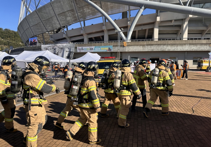 올해 훈련은 진주종합경기장에서 경기장 붕괴 및 화재로 인한 인파사고를 재난유형으로 선정해 진행됐다. 진주종합경기장 서북쪽에서 가스 누출로 화재가 발생하고가스 저장탱크가 폭발해 경기장 일부가 붕괴돼 대피 중 다중밀집으로 인파사고가 발생한 상황을 설정했다.
