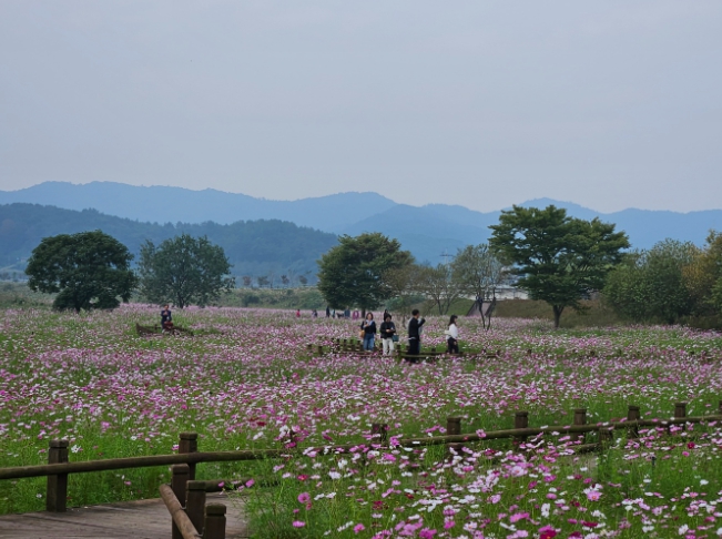 갈대 제거, 꽃씨 파종, 관수시설 설치, 잡초 제거 등 꾸준한 관리 작업에 마을 이장단, 부녀회, 여성단체협의회 등 주민 모두가 힘을 모아 꽃밭을 가꿔왔으며, 모두의 노력이 더해져 방문객들에게 더욱 아름다운 코스모스를 선보일 예정이다.