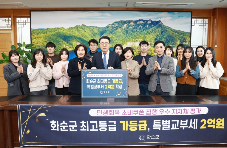 [메이저뉴스]화순군은 24일 행정안전부가 주관한 ‘민생회복 소비쿠폰 집행 우수 지자체 평가’에서 최우수 지자체로 선정돼 특별교부세 2억 원을 확보했다고 밝혔다.