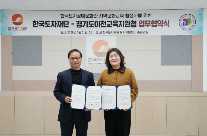 [메이저뉴스]이천교육지원청은 1월 21일 한국도자재단과 이천시 관내 문화예술교육사업 및 학교교육프로그램 활성화를 위한 업무협약을 체결했다.