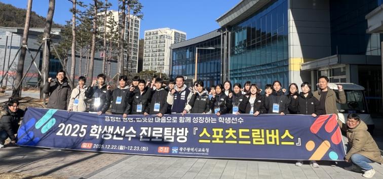 [메이저뉴스]광주시교육청은 22~23일 광주체육중학교 학생 선수 20명이 참여한 가운데 ‘2025 학생선수 진로탐방 스포츠 드림버스’를 운영했다.