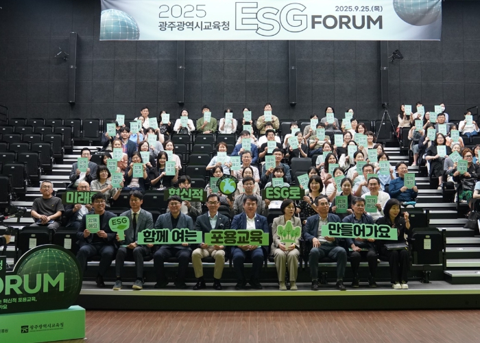 [메이저뉴스]광주시교육청시민협치진흥원은 25일 광주정보문화산업진흥원 MX스튜디오에서 이정선 교육감, 교직원, 학생, 학부모, 시민 등 200여 명이 참석한 가운데 ‘광주광역시교육청 ESG 포럼’을 개최했다.