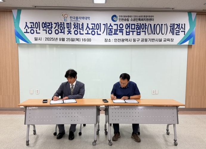 이번 협약은 지역 소공인의 경영 환경이 갈수록 어려워지는 상황 속에서, 한국폴리텍대학 남인천캠퍼스 산학협력처가 보유한 교육 인프라와 전문 커리큘럼을 활용해 소공인의 역량을 체계적으로 강화하기 위해 마련됐다.