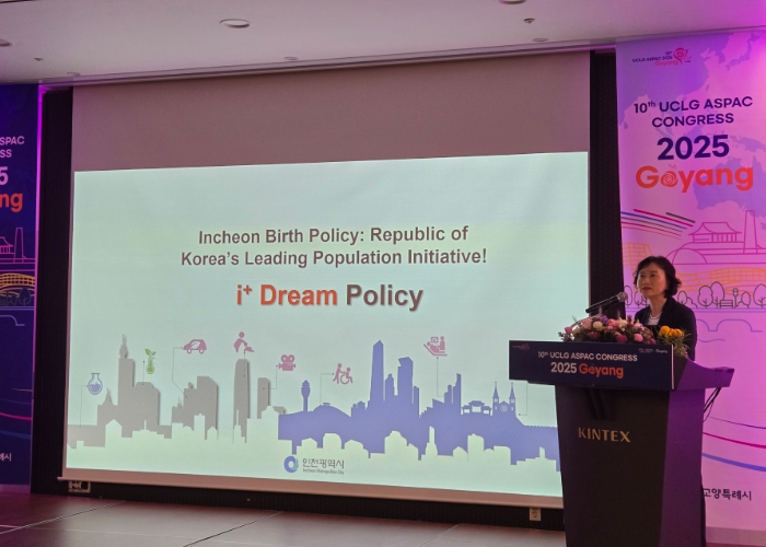 [메이저뉴스]인천광역시는 2025년 9월 24일부터 26일까지 고양 킨텍스 제1전시장에서 열리는 '2025년 제10차 세계지방정부연합 아시아‧태평양지부(UCLG ASPAC) 고양총회'에 참가해, ‘가족친화도시: 출산율 증가 및 가족지원에 적합한 도시환경 조성’을 주제로 한 서브포럼에서 인천형 출생정책의 성과를 세계 지방정부와 공유했다고 밝혔다.