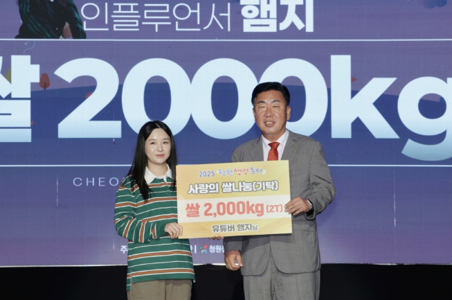 | ▲ 청주시 유튜버 햄지, 2025 청원생명축제서 쌀 2톤 기탁 |
