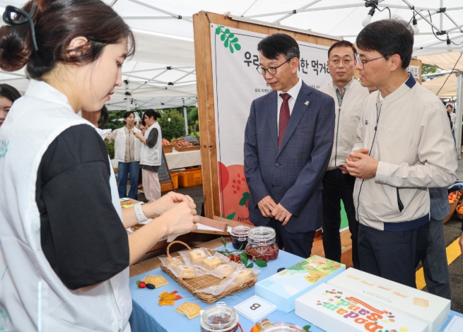 이번 행사는 창원 지역 10개 농가와 호우 피해 지역 5개 농가 등 총 17개 농가가 참여해 배, 사과, 샤인머스켓, 멜론 등 신선 농산물과 쌀식빵, 베이글, 유과, 수제청 등 30여 종의 가공식품을 판매했다.