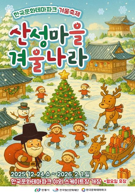 [메이저뉴스]안동시와 한국정신문화재단은 한국문화테마파크에서 12월 24일부터 2026년 2월 1일까지 크리스마스와 겨울을 주제로 한 ‘산성마을 겨울나라’ 행사를 한국문화테마파크 일원에서 개최한다고 밝혔다.