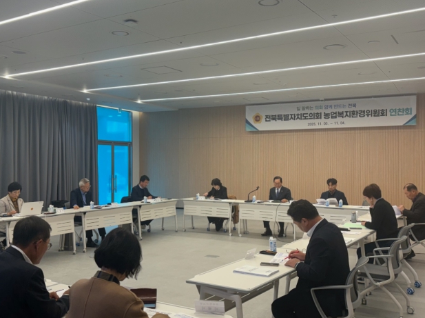 [메이저뉴스] 전북특별자치도의회 농업복지환경위원회는 11월 3일부터 4일까지 정읍 JB금융그룹 아우름캠퍼스에서 2025년도 행정사무감사와 2026년도 본예산 심사를 대비한 1박 2일 간의 연찬회를 개최했다.
