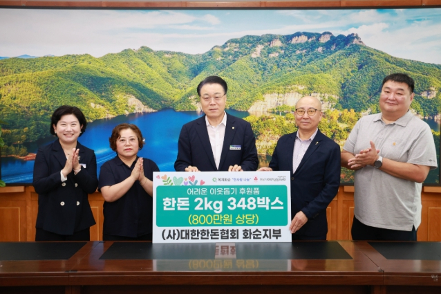 [메이저뉴스]화순군은 지난 24일 추석 명절을 맞이하여 대한한돈협회 화순지부(지부장 박용완)에서 800만 원 상당의 한돈(2kg) 348박스를 기부했다고 밝혔다.