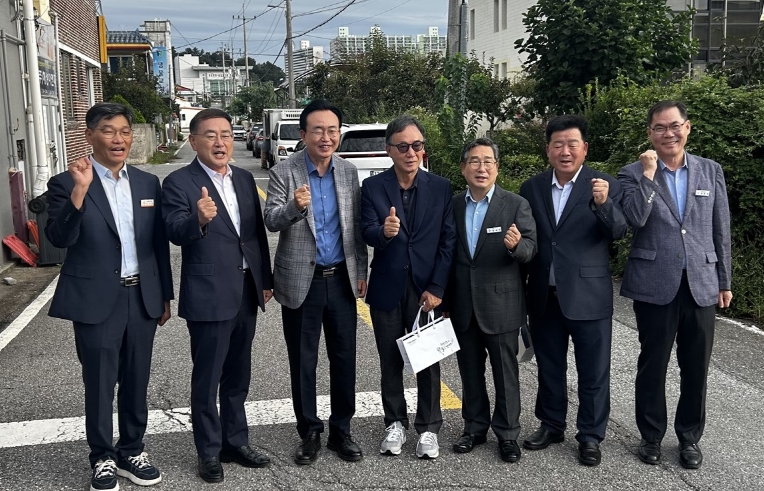 | ▲ 윤병태 나주시장(왼쪽 세 번째), 정종완 판아시아 대표(왼쪽 네 번째), 한문철 골든힐 대표(오른쪽 두 번째), 박홍래 전 전라남도 농업기술원장(왼쪽 두 번째)이 농수산식품 수출 확대 논의를 마치고 기념사진을 찍고 있다 |