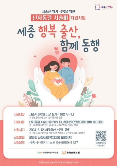 지원 규모는 최대 20명을 대상으로 ‘시술비의 50% 이내(최대 200만 원)’를 지원한다. 신청은 세종복지다옴 홈페이지를 통해 가능하다.