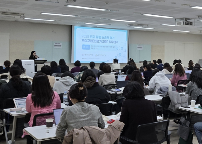 [메이저뉴스]경기도교육연구원 경기평가관리센터가 2025년 12월 3일부터 12월 20일까지 온·오프라인 혼합형으로 운영한 ‘2025 경기 중등 논술형 평가 핵심교원(전문가 과정) 직무연수’를 총 20시간 과정으로 마무리했다. 연수에는 중등 교사 77명이 참여했으며, 실습 중심 프로그램으로 구성돼 참가자들의 만족도가 높게 나타났다.