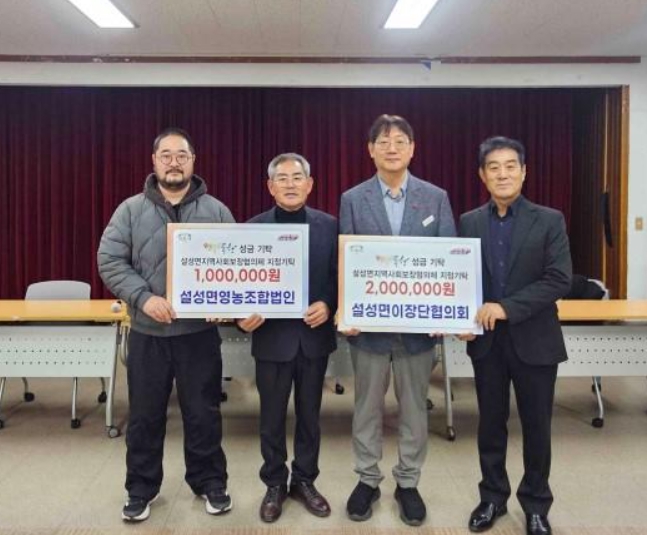 이번 성금 기탁은 설성면 이장단협의회가 200만 원, 설성영농조합법인이 100만 원을 각각 마련해 총 300만 원이 조성됐으며, 기탁된 성금은 관내 홀몸어르신과 도움이 필요한 이웃들을 위해 사용될 예정이다.