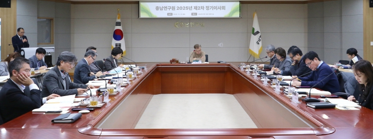 전희경 충남연구원장은 “2025년 연구원은 도정 핵심과제에 대한 정책 대안 제시, 중앙·지방정부 공모과제 및 국책연구 수행, 학술행사·포럼 개최 등을 통해 연구성과의 정책 반영과 대외 신뢰도 제고에 의미 있는 성과를 거뒀다”며 “급격한 인구변화와 기후위기, 산업전환이라는 삼중의 도전을 기회로 바꾸는 것이 충남연구원의 가장 중요한 사명인 만큼, 이번 이사회를 통해 심의·의결된 2026년도 사업계획과 예산안 등을 바탕으로, 도민 삶의 변화를 체감할 수 있는 실질적인 정책 대안을 제시하겠다”고 말했다.