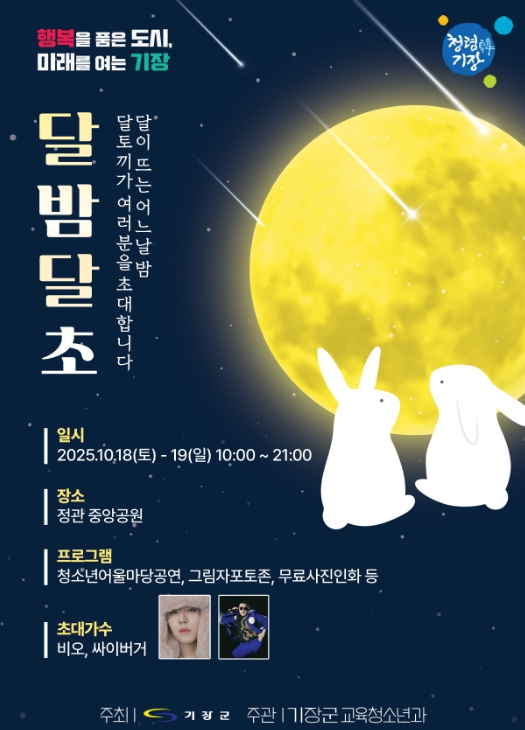 [메이저뉴스]기장군은 오는 18일부터 19일까지 정관읍 중앙공원 일원에서 2025 기장군청소년어울마당 ‘달밤달초’를 개최한다고 15일 밝혔다.