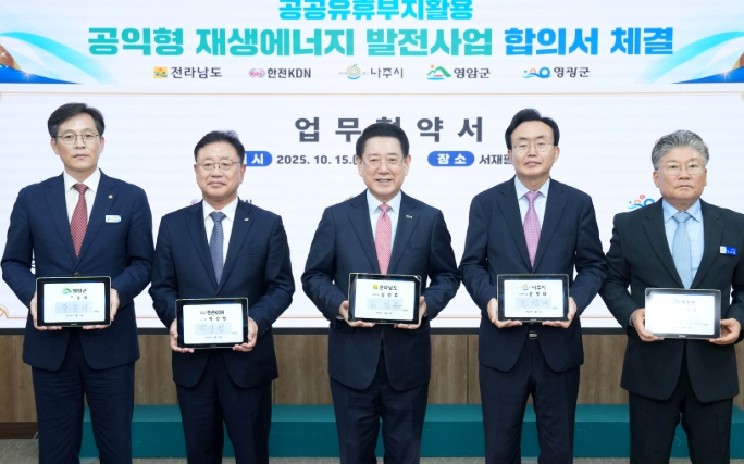 [메이저뉴스]전라남도는 15일 새정부의 재생에너지 대전환 기조와 재생에너지 보급 확대 정책에 따라 나주시, 영광군, 영암군, 한전KDN과 탄소중립 실현·에너지 기본소득 실현을 위한 ‘공익형 재생에너지 발전사업’ 업무협약을 했다고 밝혔다.