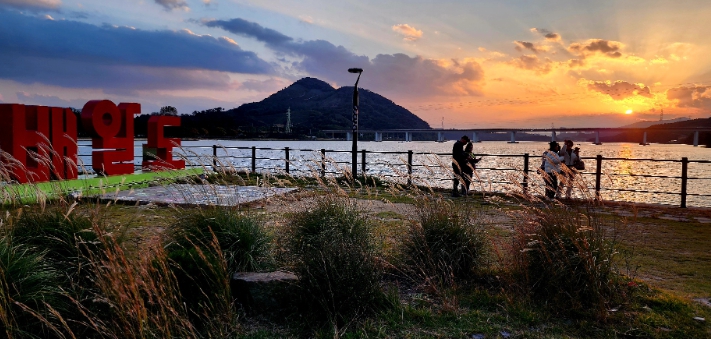 금호동과 중마동을 잇는 삼화섬은 해가 지는 시간, 노을을 바라보며 멍하니 머무는 ‘놀-멍’ 명소로 사랑받는다.