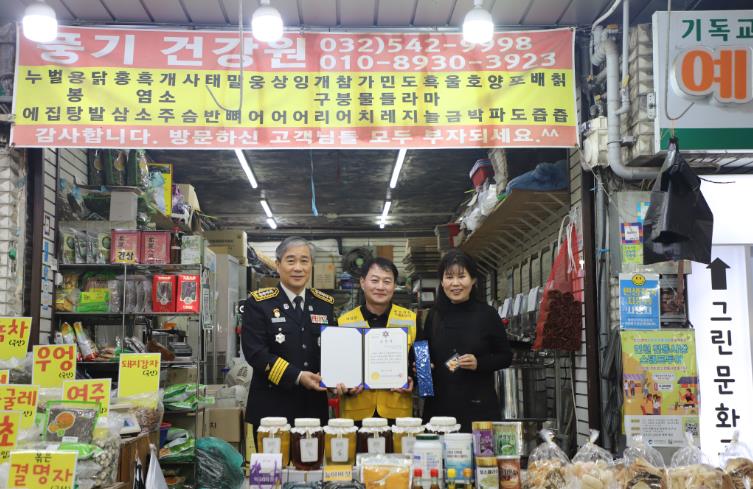 소방서는 각 전통시장을 방문해 표창장 수여와 함께 겨울철 화재예방수칙을 안내하고 시장 내 화재취약요인을 확인하는 현장 점검도 병행했다.