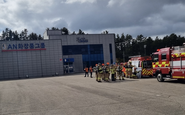 [메이저뉴스]영동소방서장는 24일 황간면에 위치한 AN화장품 공장에서 가상 화재상황 부여에 따른 충북형 화재진압 현장지휘 전술 훈련을 실시했다.