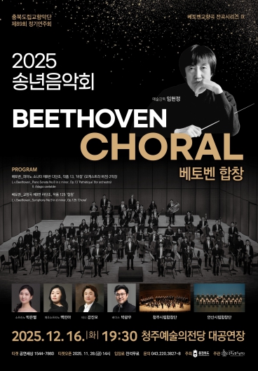 임헌정 예술감독은 “베토벤 9번은 화합과 희망의 메시지를 담은 작품으로, 한 해를 마무리하는 시점에 큰 의미를 지닌다”며 “도민 여러분의 사랑 속에 이뤄낸 첫 전석 매진의 성과를 바탕으로, 앞으로도 충북도립교향악단만의 깊이 있는 음악을 들려드리겠다”고 밝혔다.