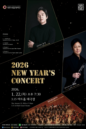 [메이저뉴스]창원시립교향악단은 2026년 병오년 새해를 맞아 희망과 감동의 메시지를 전하는 '2026 신년음악회(NEW YEAR’S CONCERT)'를 오는 1월 22일 오후 7시 30분, 3·15아트센터 대극장에서 개최한다.