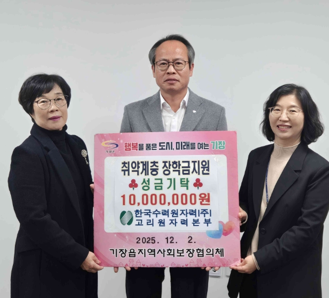 [메이저뉴스] 기장군 행정복지센터는 지난 2일 ㈜한국수력원자력 고리원자력본부, 기장읍 지역사회보장협의체(민간위원장 권묘연)와 함께 지역 내 취약계층 학생을 위한 장학금 기탁식을 개최했다고 3일 밝혔다.