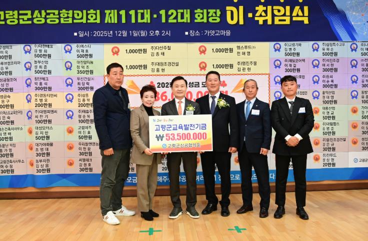 [메이저뉴스]고령군상공협의회에서 12월 1일 가얏고마을에서 개최된 ‘2025년 고령군상공협의회 워크숍·정기총회 및 회장 이·취임식’에서 지역의 교육 발전과 인재 양성을 위해 사용해 달라며 교육발전기금 5,350만원을 기탁했다.