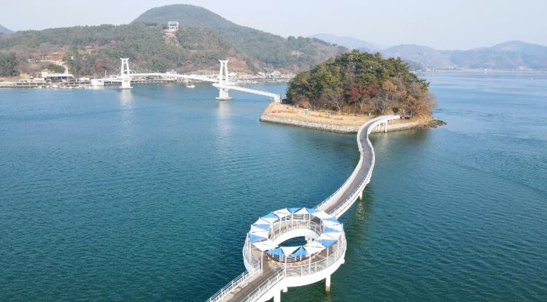 [메이저뉴스]광양시는 지난 15일, 배알도 수변공원에 위치한 해맞이다리 중앙부 원형 구간에 시민과 관광객을 위한 쉼터 조성을 완료했다고 밝혔다.