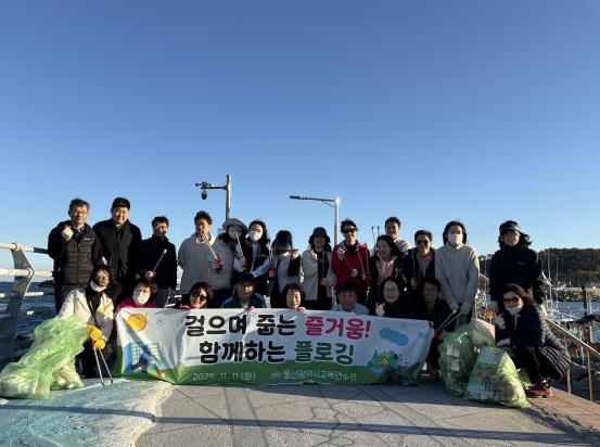 [메이저뉴스] 울산교육연수원은 지난 11일 북구 정자동 일대에서 ‘걸으며 줍는 즐거움! 함께하는 쓰담 달리기(플로깅)’를 주제로 환경 정화 활동을 했다.