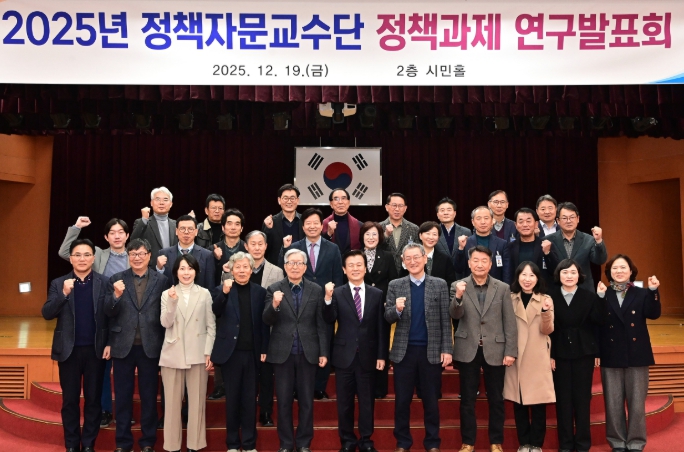 [메이저뉴스]진주시는 19일 진주시청 시민홀에서 조규일 시장을 비롯해 정책자문교수단, 공무원 등 120여 명이 참석한 가운데 ‘2025년도 정책자문교수단 정책과제 연구발표회’를 개최했다.