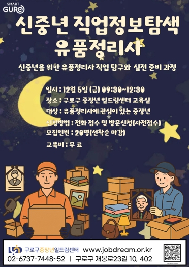 | ▲ 구로구 중장년일드림센터 ‘유품정리사 직업정보탐색’ 홍보 포스터 |