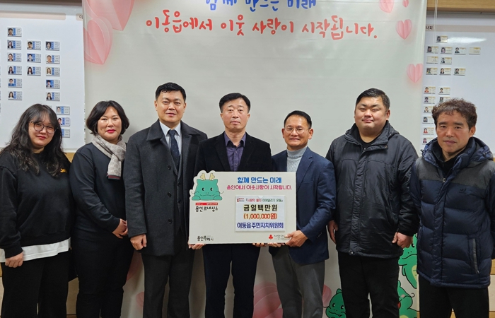 | ▲ 이동읍 주민자치위원회가 이웃돕기 성금을 기탁했다. |