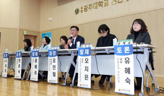 토론회 첫 발제자인 윤혜려 공주대학교 교수는 충남의 급·간식 지원을 단순 복지가 아닌 저출생·고물가 시대의 교육복지로 봐야 한다며, 현행 고정 단가가 물가를 따라가지 못할 경우 급식의 질 저하와 기관 간 격차로 이어질 수 있다고 지적했다.