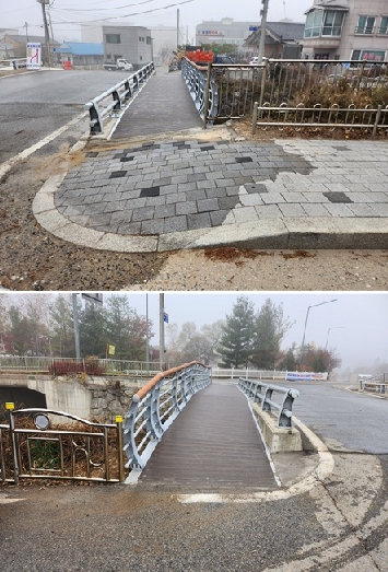 군은 이번 공사를 통해 길이 18.7m, 폭 2.4m 규모의 인도교를 신설했으며, 구조물은 통행 안전성과 내구성을 확보할 수 있도록 설계·시공됐다. 또한 난간을 설치해 보행자의 추락 위험을 방지하고 더욱 쾌적하고 안전한 보행로를 조성했다.