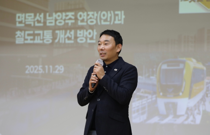 [메이저뉴스]국회의원 김용민(남양주병)은 2025년 11월 29일 오후 2시, 진건퇴계원행정복지센터 4층에서 '면목선 남양주 연장(안)과 철도교통 개선 방안'을 주제로 정책설명회를 개최했다. 이날 설명회에는 많은 시민이 참석해 남양주시 철도교통의 미래 방향에 대해 함께 논의했다.
