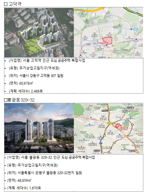 | ▲ 신규 도심 공공주택 복합지구 2곳 사업 개요 |