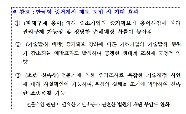 특히, 미국, 독일, 일본 등에서는 이미 증거개시 제도를 시행중인 데 반해, 한국에서는 관련 제도가 부재해 기술보호를 위한 기술 선진국 수준의 제도 마련 필요성이 끊임없이 제기되어 왔었다.