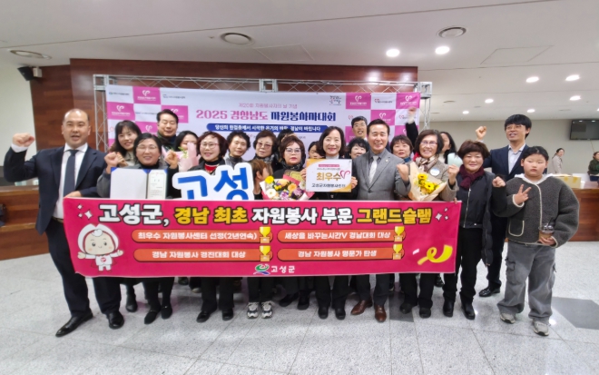 올해 고성군은 △경남 자원봉사센터 평가에서 2년 연속 최우수 센터 선정 △‘세상을 바꾸는 시간 V’ 경남대회 대상 수상(청소년나누Go봉사단 회원 김정인) △2025 경남 자원봉사 경진대회 대상 수상(빈집공작소 회장 우대경)으로 3개 대회 전 부문 1등이라는 우수한 성과를 거두어, 경남 최초로 ’자원봉사 부분 전 부문 석권(그랜드슬램)’을 달성하며 자원봉사 1번지로서의 위상을 확고히 했다.
