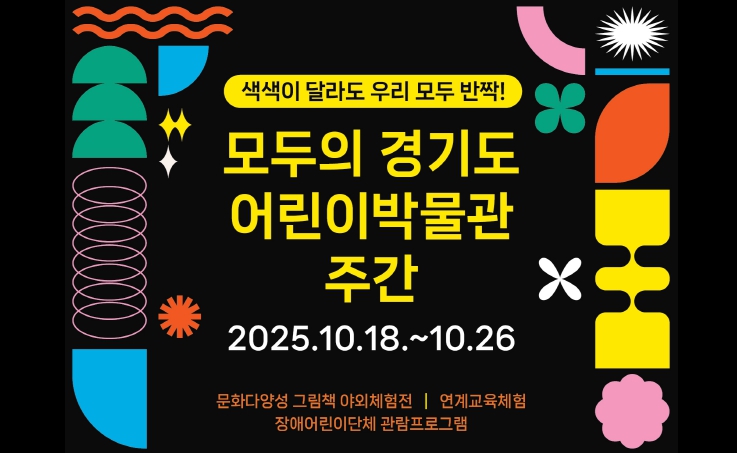 [메이저뉴스]경기문화재단 경기도어린이박물관(관장 박균수)은 오는 10월 18일부터 10월 26일까지 문화다양성 행사 〈색색이 달라도 우리 모두 반짝! 모두의 경기도어린이박물관 주간〉을 운영한다. 본 행사는 《문화다양성 그림책 야외체험전》, 유아 및 초등 어린이를 위한 연계프로그램, 장애어린이단체 맞춤형으로 개발된 접근성 콘텐츠를 활용한 관람프로그램 시범운영 등 총 3종으로 구성되어 다양한 모습의 관람객을 만나게 된다.