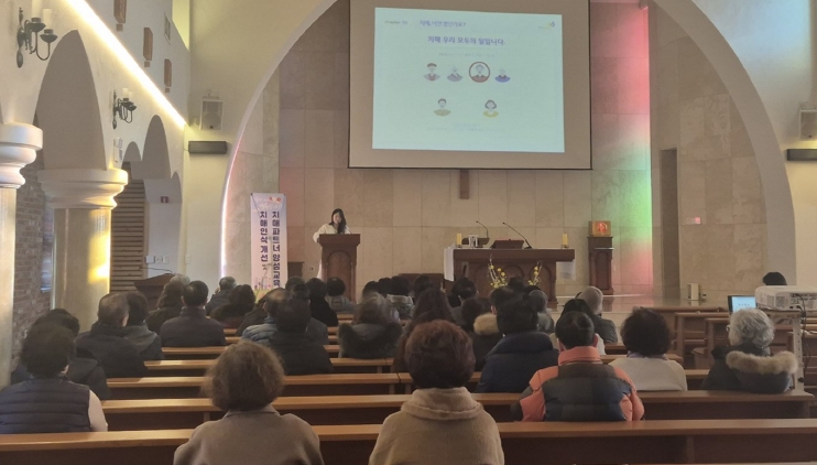 [메이저뉴스]청주시 청원보건소 치매안심센터는 30일 청원구 사천동 새터성당에서 교인 50여명을 대상으로 치매 인식개선 홍보 캠페인을 진행했다.