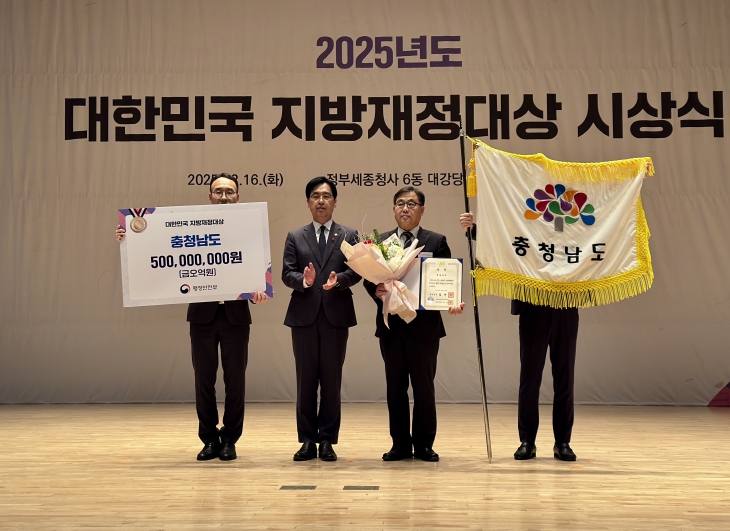 [메이저뉴스]충남도는 16일 정부세종청사 대강당에서 열린 ‘2025년 대한민국 지방재정대상 시상식’에서 국무총리상을 받아 재정 인센티브 5억 원을 확보했다.