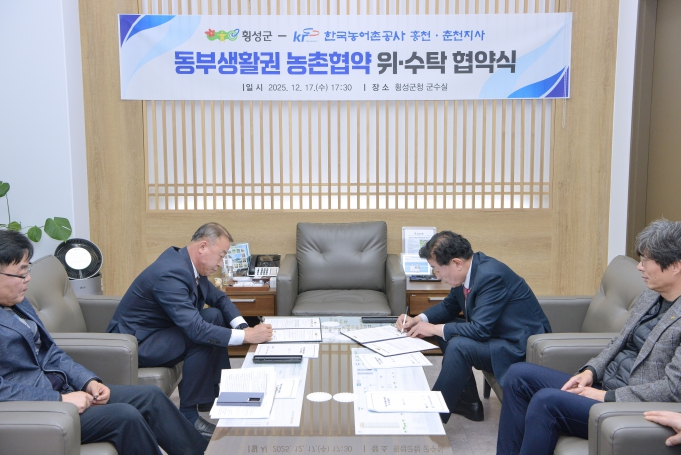 [메이저뉴스]횡성군은 17일 한국농어촌공사 홍천·춘천지사와 “동부생활권 농촌협약”에 대한 업무 위·수탁 협약을 체결했다고 밝혔다.