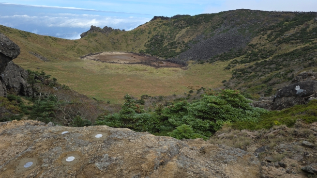 | ▲ 백록담 남쪽 내벽에 설치된 추적표식판 전경 |