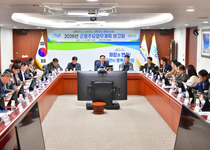 [메이저뉴스]장성군이 2026년 군정 운영의 밑그림을 그렸다. 군은 최근 군청 상황실에서 부서장, 읍면장 전원이 참석한 가운데 새해 군정 주요업무계획 보고회를 가졌다.