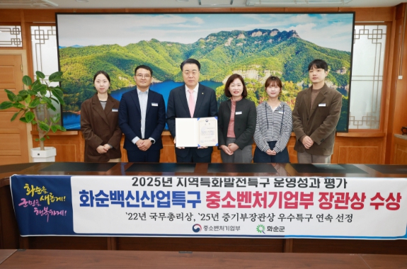 | ▲ 화순군, ‘2025년 우수특구’ 중소벤처기업부장관상 수상 기념사진 |