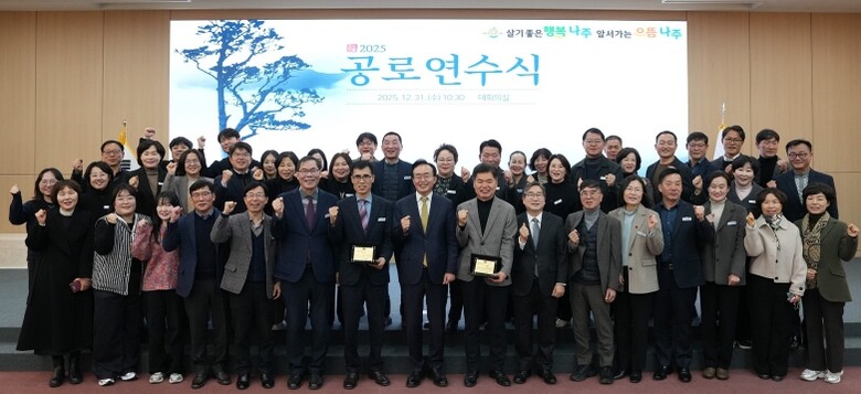 1부 종무식에서는 2025년 한 해 동안 시정 발전과 시민 복지 증진에 기여한 시민과 기관, 공무원 등 20명에게 정부와 전라남도, 나주시 표창이 수여됐다.