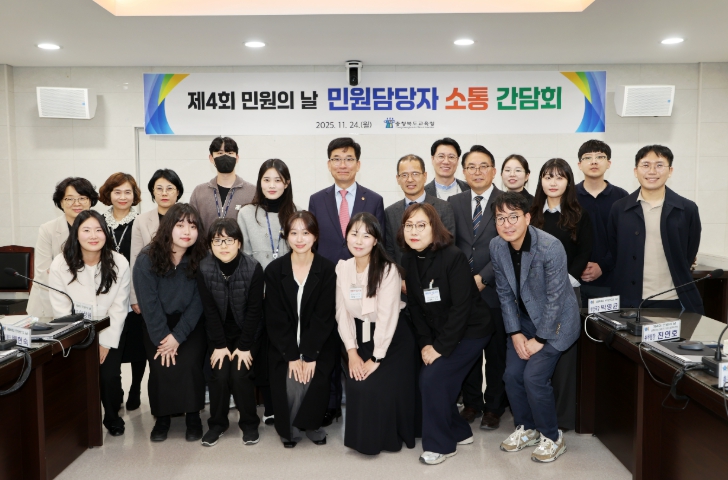 [메이저뉴스]충청북도교육청은 11월 24일, 제4회 민원의 날을 맞아 민원업무 담당자들을 격려하고, 현장의 목소리를 직접 청취하는 뜻깊은 자리를 마련했다고 밝혔다.